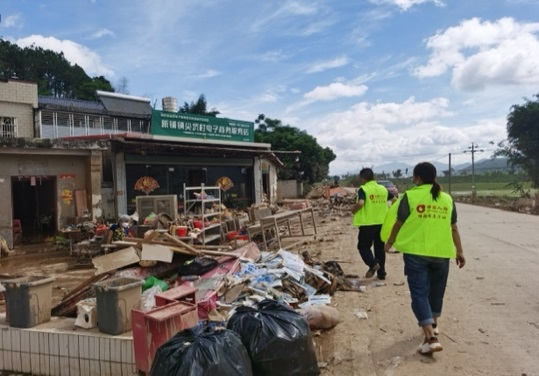 在广东梅州,中国人寿寿险广东省分公司迅速成立救灾抗灾服务团队,通过主动与受灾区域政府、民政部门、村委会等联系,积极发动公司员工、销售人员多方收集出险人员信息等方式全面寻找客户,做好理赔服务。公司相关工作人员在雨势暂停后,立刻前往梅州市蕉岭县新埔镇灾区一线走访群众,展开保险理赔服务。